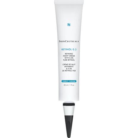 Retinol 0.3 is recommended for first-time retinol users. This potent nighttime treatment features 0.3% pure retinol enhanced with the latest stabilization and delivery technologies to ensure a steady, even release. Formulated with soothing bisabolol to minimize irritation and specially packaged to preserve its potency, this retinol face cream helps improve the appearance of fine lines, wrinkles, discoloration, texture , and pores by accelerating cellular turnover. Retinol cream 0.3 is ideal for continued use or conditioning skin as a prerequisite to SkinCeuticals Retinol 0.5.